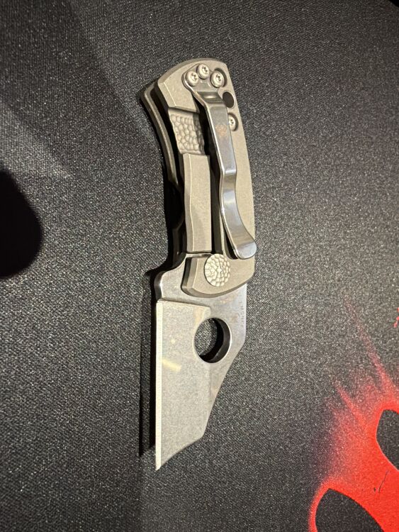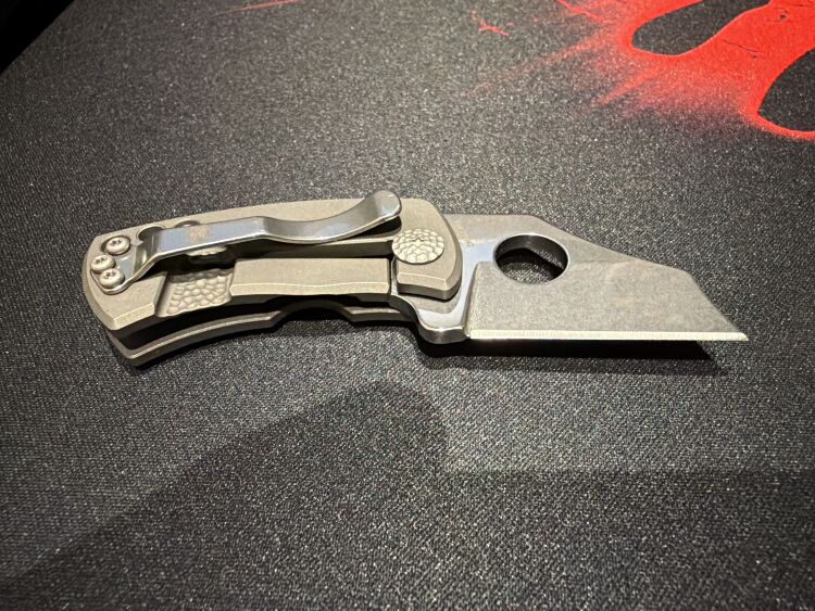 Рукоять изготовлена из титана. Титан — материал, имеющий превосходные механические свойства. Он достаточно прочный и жёсткий и обладает небольшим весом в сравнении с другими популярными металлами использующимися в рукоятях ножей.