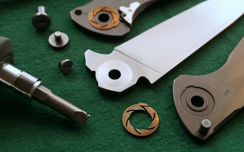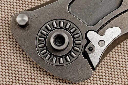 Разобрав нож, первым делом замечаешь тот самый подшипник MRBS — именно он обеспечивает великолепную механику этой модели. При разборке стоит быть осторожным: шарики в этой системе не зафиксированы в обойме и могут легко выпасть.