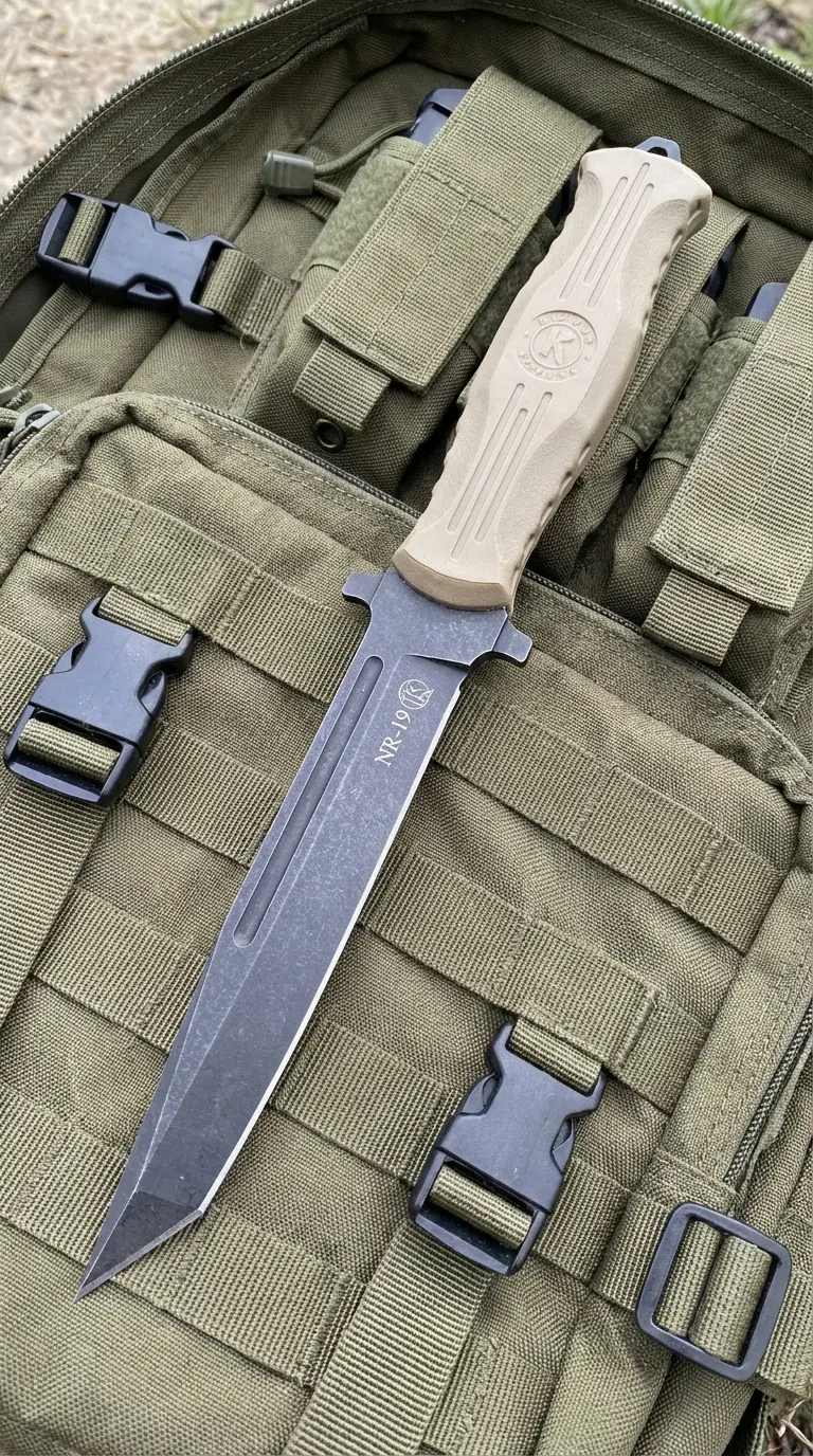 Сталь AUS-8 — классика для Кизляра: не пересушена, не скалывается, легко правится в поле. Рукоять из эластрона — это отдельный плюс: она теплая, не скользит и гасит отдачу при ударе. Нож выглядит как отличный полевой универсал для тех, кто понимает, зачем ему такой агрессивный профиль.
