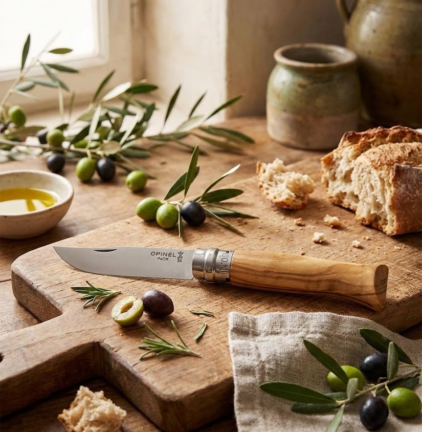 Подарить можно кому угодно — и по поводу, и без. Вообще их существует огромное множество вариаций и по размеру, и по материалу рукояти. Я сегодня взял Opinel №8 с рукоятью из оливы. Надёжный и удобный инструмент в очень стильном и аутентичном формате. Нержавейка на клинке в сочетании с хорошей геометрией клинка делает его превосходным рабочим инструментом: нож отлично режет и также отлично сопротивляется коррозии, да и в плане заточки никаких нюансов с ним нет — керамический мусат или даже кружка могут быстро привести его в рабочую остроту. Олива на рукояти выглядит и ощущается очень благородно, к тому же это достаточно плотная древесина, так что и к влаге она более устойчива, нежели бук, который по стандарту идёт на этих ножах. Короче говоря, отличный нож — хоть на пикник с собой взять, хоть на каждый день носить.