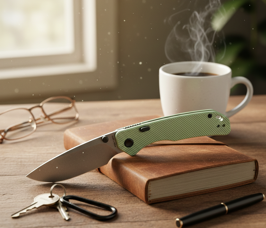 Это уже полноценный, современный и стильный нож на каждый день. Рукоять выполнена из алюминия с очень приятной насечкой, которая делает нож тактильно очень приятным и менее скользким в руке. Клинок в классической форме drop point изготовлен из хорошей инструментальной стали 154CM. Запирающий механизм у ножа — это top liner-lock. Внешне выглядит как обычный button-lock, но куда проще по конструктиву, за счёт чего более долговечен и устойчив к загрязнениям. Короче говоря, очень удобный складной нож, который прекрасно подойдёт и как первый нож, и как дополнение в уже имеющуюся коллекцию.