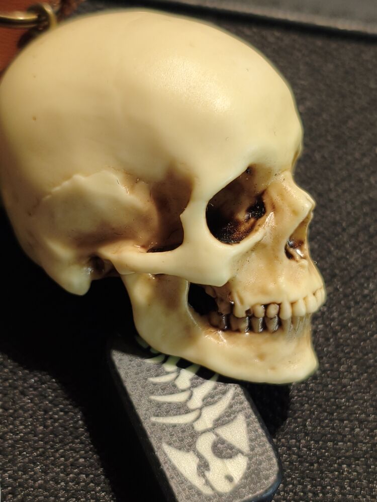 Темлячная бусина Череп от Nomad Cat — выразительный аксессуар с мрачной эстетикой, созданный для ценителей деталей и атмосферы. Натуралистичный образ человеческого черепа с оторванной челюстью отсылает к мотивам постапокалиптической символики, смертности и тленности бытия, подчёркивая индивидуальность снаряжения и характер владельца.