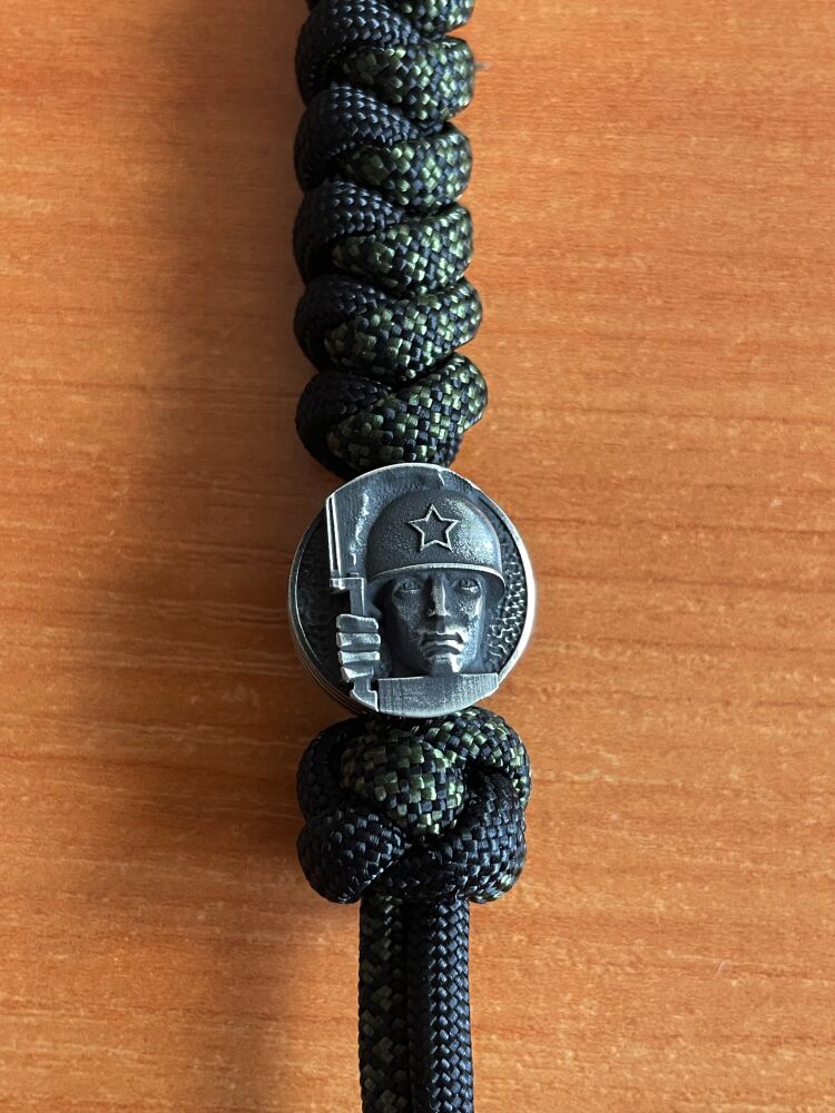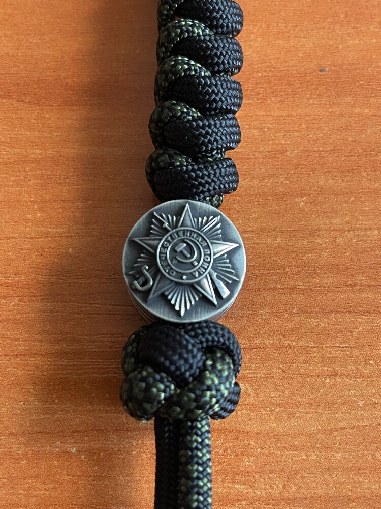 Бусина на темляк для ножа, от мастерской Александра Гагарина. Ювелирная работа стилизована под орден и памятник времен ВОВ. Ручное литьё. Пьютер.