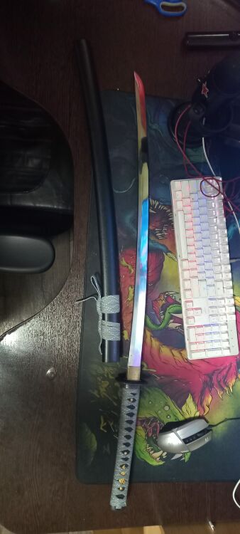 Ножны (сая) выполнены из пластика. Также на ножнах есть декоративная оплётка (сэйго), как у боевых аналогов.