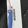 Клинок имеет форму clip-point, которая обеспечивает остроту и точность реза. Материал клинка — порошковая сталь CPM S90V — одной из топовых нержавеющих сталей, известной своей выдающейся износостойкостью и крайне долгим удержанием режущей кромки. Высокое содержание ванадия формирует твердые карбиды, обеспечивая исключительный ресурс реза. Обработка Stonewash придает поверхности матовый вид, скрывает царапины и отпечатки пальцев, повышая практичность ножа. Раскрытие клинка осуществляется через подпальцевое отверстие, что обеспечивает лёгкость и скорость в использовании. Осевой узел оснащён керамическим шарикоподшипником, благодаря которому ход клинка плавный и лёгкий. За фиксацию отвечает надёжный замок Button Lock, фиксирующий клинок, он безопасен, интуитивно понятен и удобен в эксплуатации одной рукой.