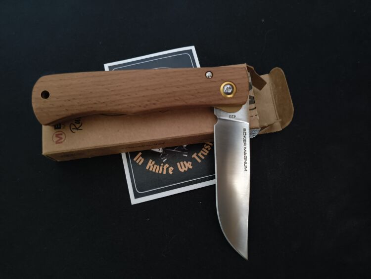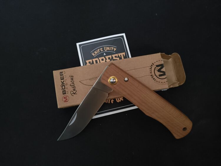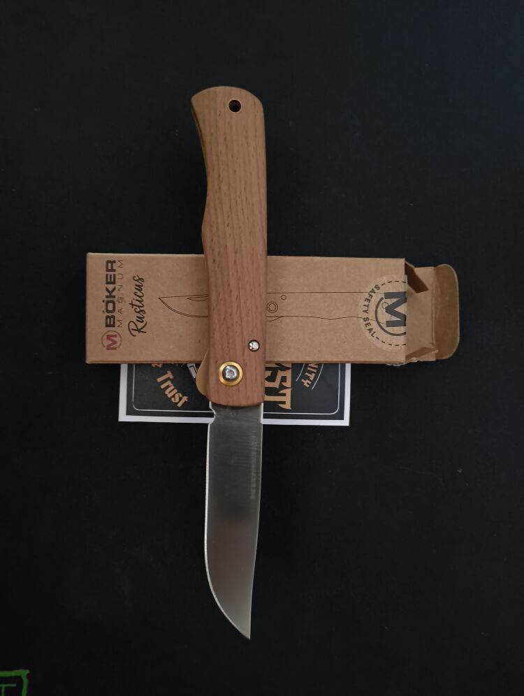 Из коробки чуть туговат, ослабил слегка осевой. Тоненький,но острый- так и просится по грибы,прутик срезать, веточку острогать). Классный "деревенщина"(rusticus же). Очень приятно упакован, доволен необычайно)