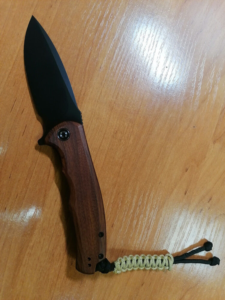 Клинок выполнен из 9Cr18MoV — это идеальный вариант, для недорогих повседневных ножей. Сталь не выдает каких-то сверхъестественных показателей, но за свою цену показывает весьма неплохие характеристики. Этот сплав отлично противодействует коррозии, показывает неплохую износостойкость и рез. В целом, по свойствам близка к 420HC и имеет твёрдость закалки до 58 HRC