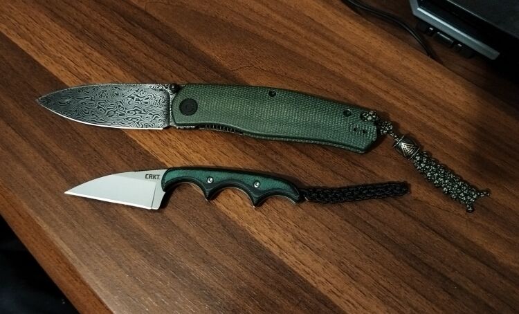 Рукоять выполнена из микарты. Микарта — это высоко декоративный конструкционный композитный материал, представляющий собой слоистый пластик на основе ткани или бумаги и полимерного связующего вещества (синтетической смолы). Микарта прочная, нескользкая, не впитывает запахи и комфортная для руки. Кроме того, материал красив, долговечен, хорошо переносит значительные перепады температуры, не вступает в реакцию со многими химическими веществами и имеет широкую цветовую гамму. Эти качества делают его более востребованным в ножевой индустрии, чем обычный пластик или дерево.