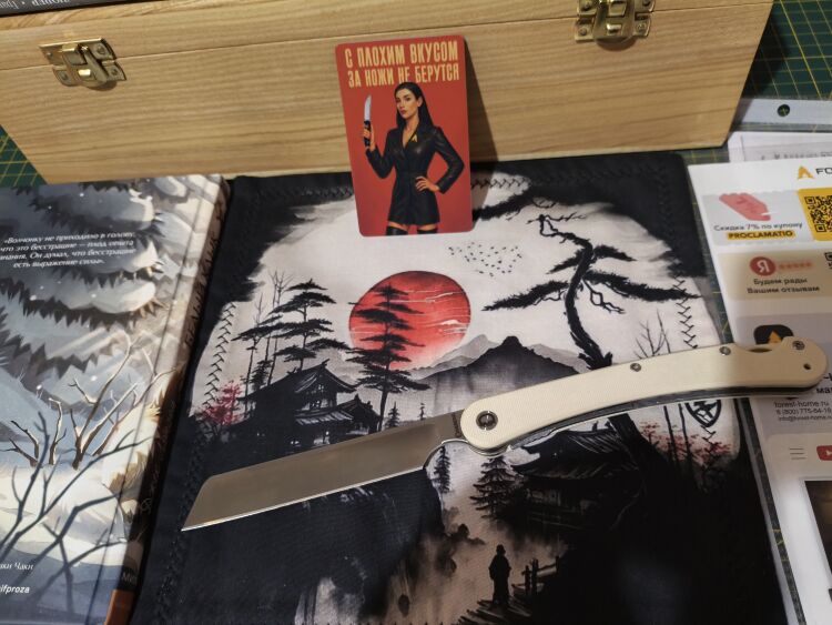 В комплекте поставляется стильный кожаный чехол с клипсой, который дополняет премиальный образ ножа и защищает его при хранении. Чехол не только практичен, но и подчеркивает эксклюзивность изделия.