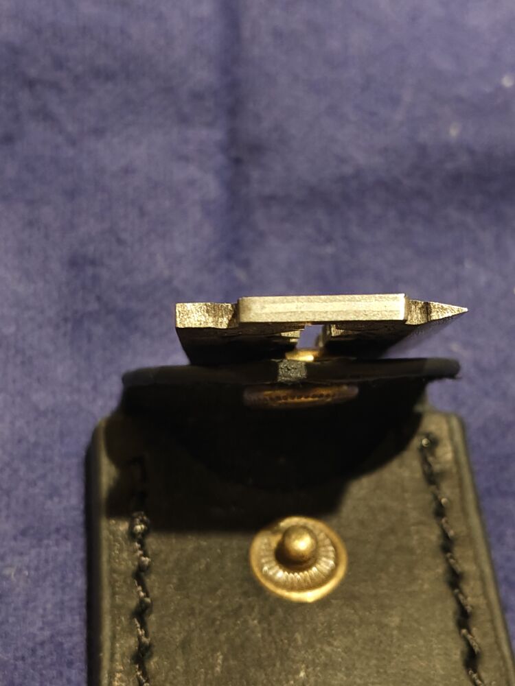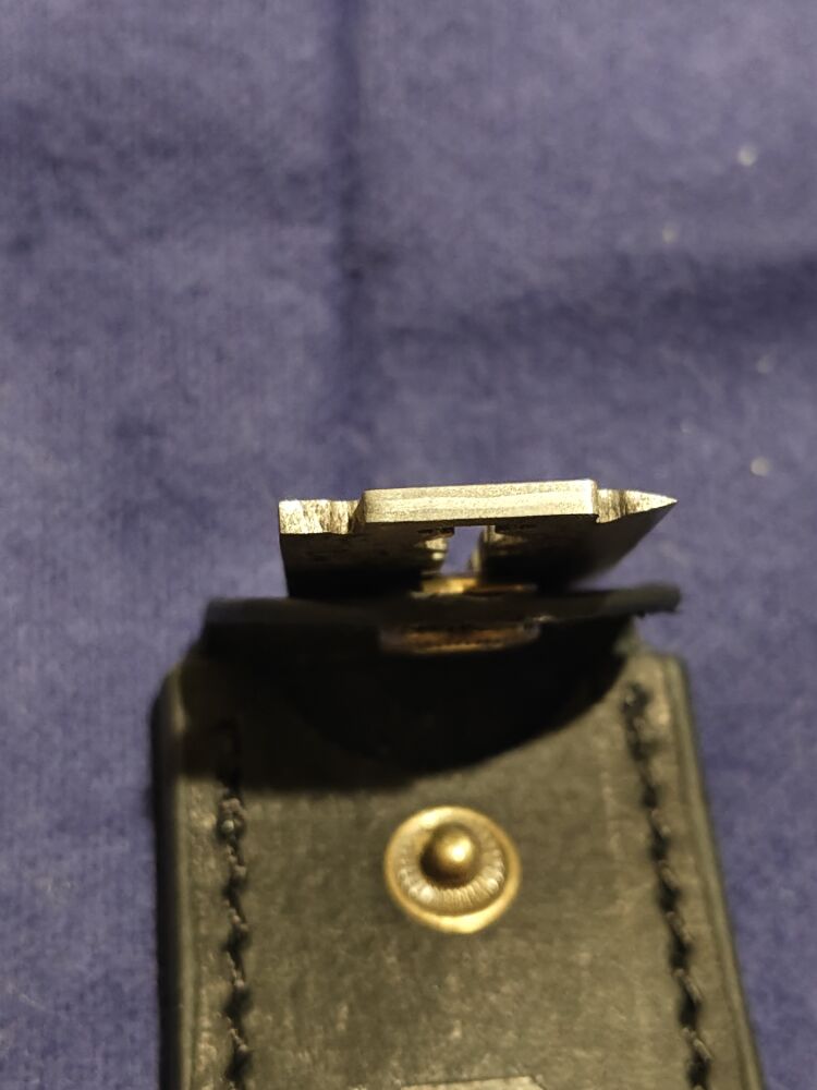 В комплекте — качественный кожаный чехол ручной работы, в который нож плотно и надёжно помещается. Чехол защищает как владельца, так и режущую кромку, и при этом не нарушает общего стиля аксессуара.