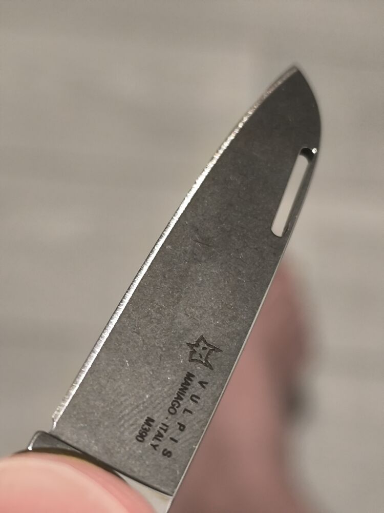 Клинок Vulpis имеет форму sheepfoot, что обеспечивает отличные режущие характеристики, особенно при выполнении задач, требующих высокой точности и контроля. Клинок ножа Vulpis выполнен из высококачественной стали M390 — одной из лучших сталей, используемых в производстве ножей. Эта сталь славится своей высокой износостойкостью и устойчивостью к коррозии, благодаря чему клинок долго сохраняет остроту даже при интенсивном использовании. Геометрия клинка оптимизирована для выполнения различных задач, будь то вскрытие упаковок или подготовка пищи в походных условиях. Раскрытие клинка осуществляется при помощи подногтевой выемки, а его фиксацию обеспечивает классический замок slip-joint, что придает процессу открывания особый характер и возвращает к классическому стилю ножевого искусства. Такая конструкция позволяет легко и безопасно управляться с ножом, делая его отличным помощником в любых ситуациях.