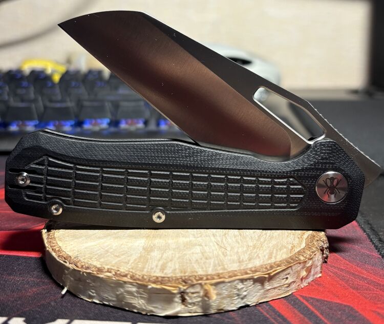 Клинок выполнен в форме sheepfoot, что придает ему хорошую управляемость и безопасность. Сталь Sandvik 14C28N известна своей высокой коррозионной стойкостью, хорошим удержанием остроты и простотой заточки. Финишная обработка сатин улучшает внешний вид. На обухе клинка расположено рифление, которое обеспечивает уверенный контроль при выполнении точных работ. Для открытия ножа предусмотрены два способа – отверстие в клинке и фронтфлиппер, что делает его удобным для разных пользователей. Замок liner-lock надежно фиксирует клинок в рабочем положении, предотвращая случайное закрытие.