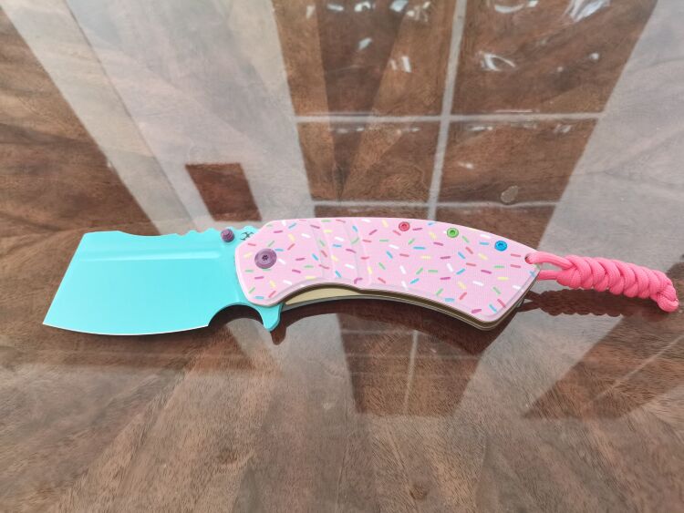 Складной нож Korvid XL от компании Kansept — это уникальное сочетание необычного дизайна и высокой функциональности. Этот крупный нож сразу привлекает внимание благодаря своему яркому внешнему виду: его цвет стилизован под розовый пончик, что придает ему неповторимый и запоминающийся облик. Тем не менее, милый дизайн не умаляет его прочности и надежности. Нож идеален для пикника и различных бытовых работ, где требуются высокие эксплуатационные качества.