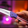 Рукоять выполнена из прочного и лёгкого алюминия 6061-T6, активно используемого в аэрокосмической промышленности. Окрашенная в цвета американского флага, она не только выглядит эффектно, но и устойчива к износу. Эргономичная форма с плавными линиями обеспечивает удобный хват. Предусмотрена переустанавливаемая клипса для ношения в положении «остриём вверх/вниз» (правая сторона).
