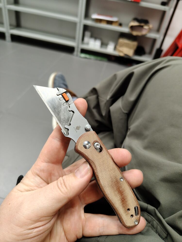 Kizer Drop Bear Utility — это функциональный складной нож, в котором сочетаются инновации, удобство и стиль. Эта модель создана на базе популярного Drop Bear, но получила сменное лезвие, что делает её идеальным решением для тех, кто часто работает с упаковкой, резкой плотных материалов или просто не хочет тратить время на заточку. Дизайнер ножа — Азо Маи, один из ведущих разработчиков бренда Kizer, известный своим вниманием к эргономике и практическому применению ножей. Drop Bear Utility — это утилитарный инструмент нового уровня, который идеально подойдёт для EDC, работы в мастерской, курьерской деятельности и любого другого сценария, где важна практичность и быстрая замена лезвия.