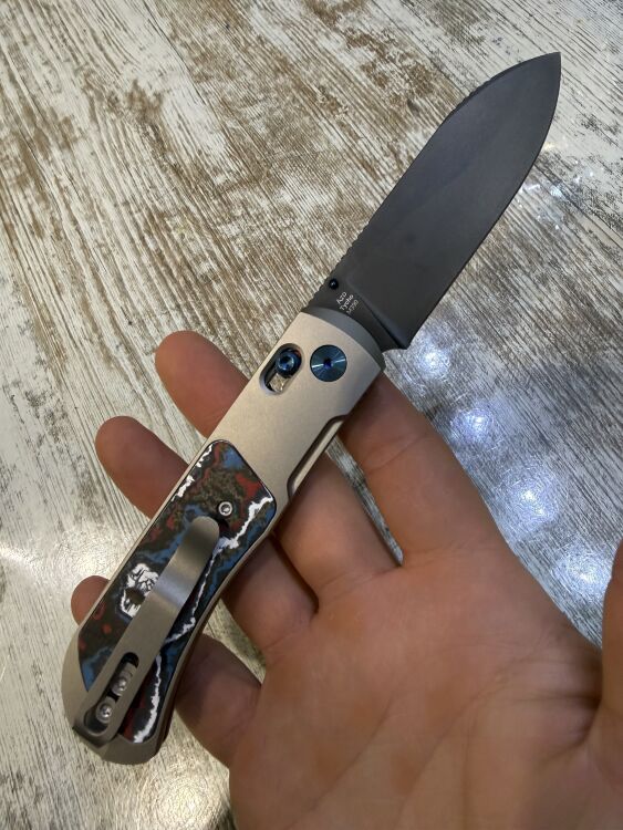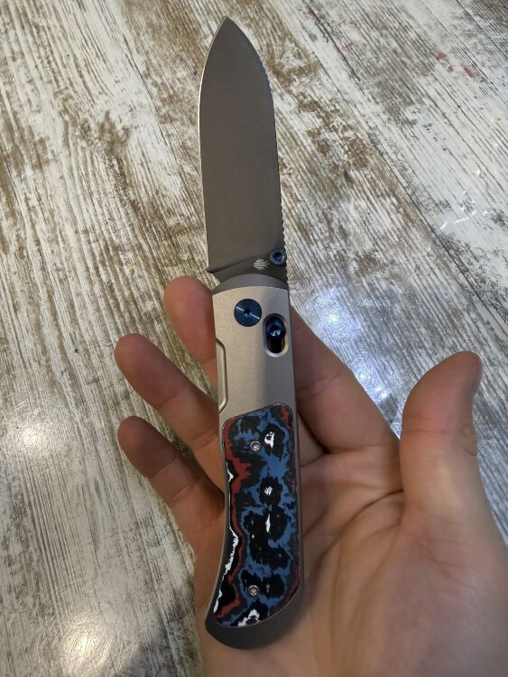 В купе с данной красотой мы получаем ещё и очень практичную вещь, он безумно лёгкий из-за своего размера и титана с карбоном на рукояти.