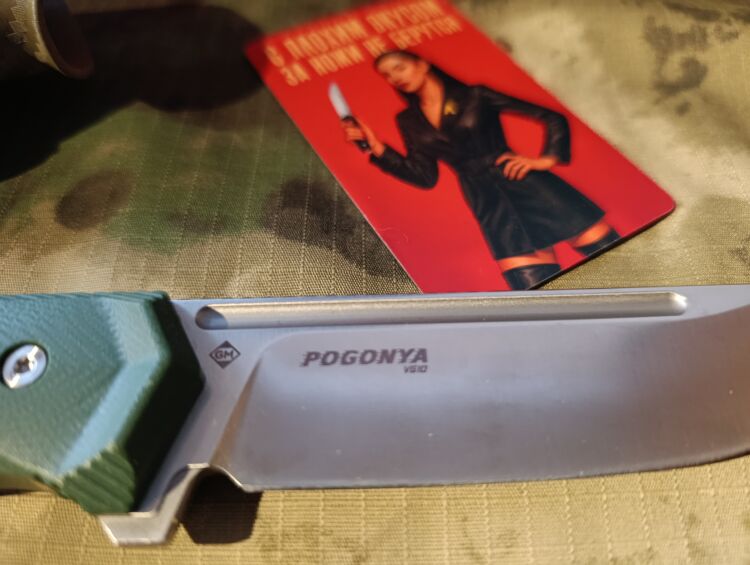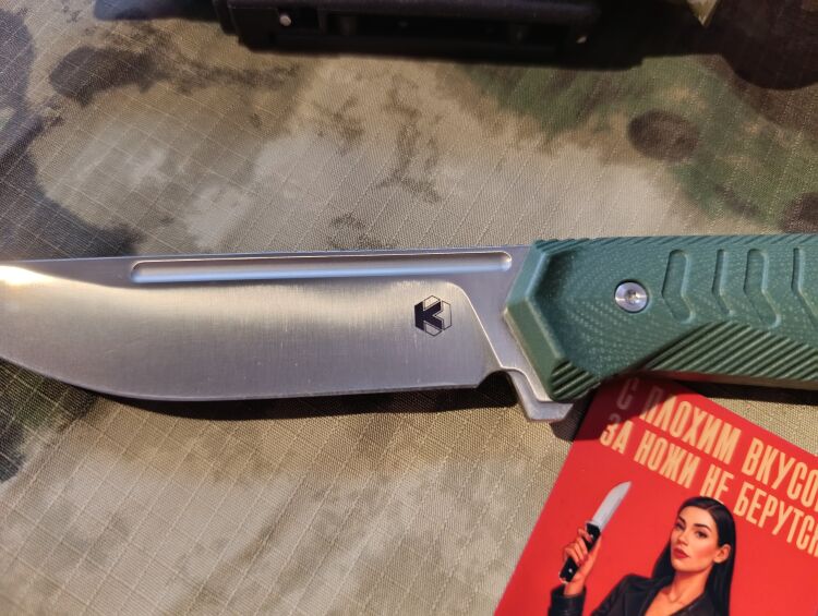Надпись на ноже выполнена в интересном стиле, не сразу обращаешь на это внимание.