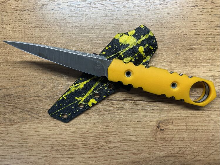 В комплекте с ножом идут качественные ножны из кайдекса с люверсами и петлёй из биотана. Такой набор обеспечивает удобное и безопасное ношение на поясе или снаряжении, а прочный кайдекс надёжно фиксирует нож и защищает его от внешних воздействий.