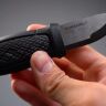 Клинок выполнен из стали Sandvik 12C27. Это коррозионно-стойкая мартенситная хромистая сталь, разработанная и производимая компанией Sandvik (Швеция). Сочетает хорошую коррозионную стойкость с удовлетворительными твердостью и износостойкостью режущей кромки при относительно низкой стоимости. Сталь популярна у производителей ножей из разных стран.
