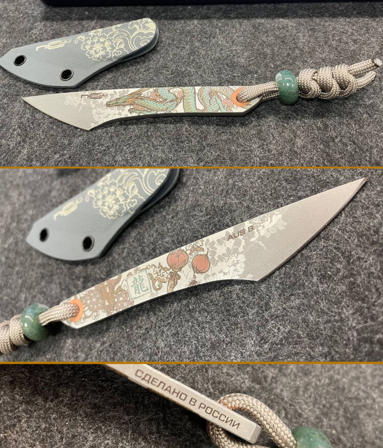 Одной из выдающихся черт ножа является его уникальный дизайн. На поверхности клинка лазером нанесено изящное изображение дракона в китайском стиле - символ 2024 года. Это не только придает ножу особый шарм, но и делает его заметным элементом вашего стиля.