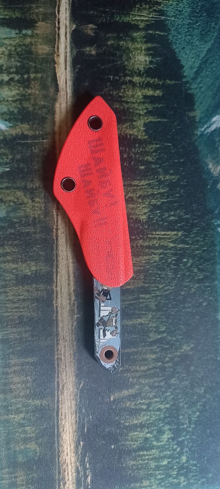 Клинок изготовлен из японской стали AUS-8, которая зарекомендовала себя как надёжный материал с отличными характеристиками прочности и устойчивостью к коррозии. Эта сталь славится своей способностью удерживать остроту даже при интенсивном использовании, что делает её отличным выбором для ежедневного ножа. Клинок обработан методом blackwash. Это придает клинку матовый оттенок и позволяет скрыть мелкие царапины, улучшая его внешний вид.
