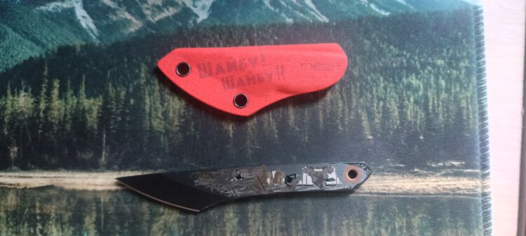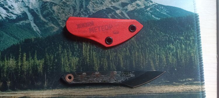 Нож поставляется с удобными ножнами из кайдекса, что позволяет безопасно носить его на шее или закреплять на снаряжении. Люверсы на ножнах предоставляют различные варианты крепления, что повышает его универсальность и комфорт при использовании.