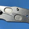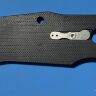 1.6 Стальная плашка: хочется отметить её сложносочинённость. Она максимально облегчена, без потери прочности + красивый «узор - разрез» фрейма. В одной из фразировок выгравирован серийный номер ножа.