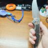 Клинок выполнен в модифицированной форме sheepsfoot, что обеспечивает превосходный контроль реза и безопасность при работе. В качестве материала использована порошковая сталь CPM S35VN – премиум-класс от компании Crucible Industries. Она отличается отличным удержанием режущей кромки, высокой коррозионной стойкостью и повышенной ударной вязкостью благодаря добавлению ниобия. Поверхность клинка обработана в технике stonewash, что защищает от бликов, маскирует царапины и придает клинку характерный матовый вид. Открытие осуществляется с помощью флиппера на закрытых шарикоподшипниках, обеспечивающих плавное, мгновенное приведение клинка в рабочее положение. Фиксация обеспечена надежным Frame Lock, дополненным автоматическим замком безопасности, предотвращающим случайное закрытие.