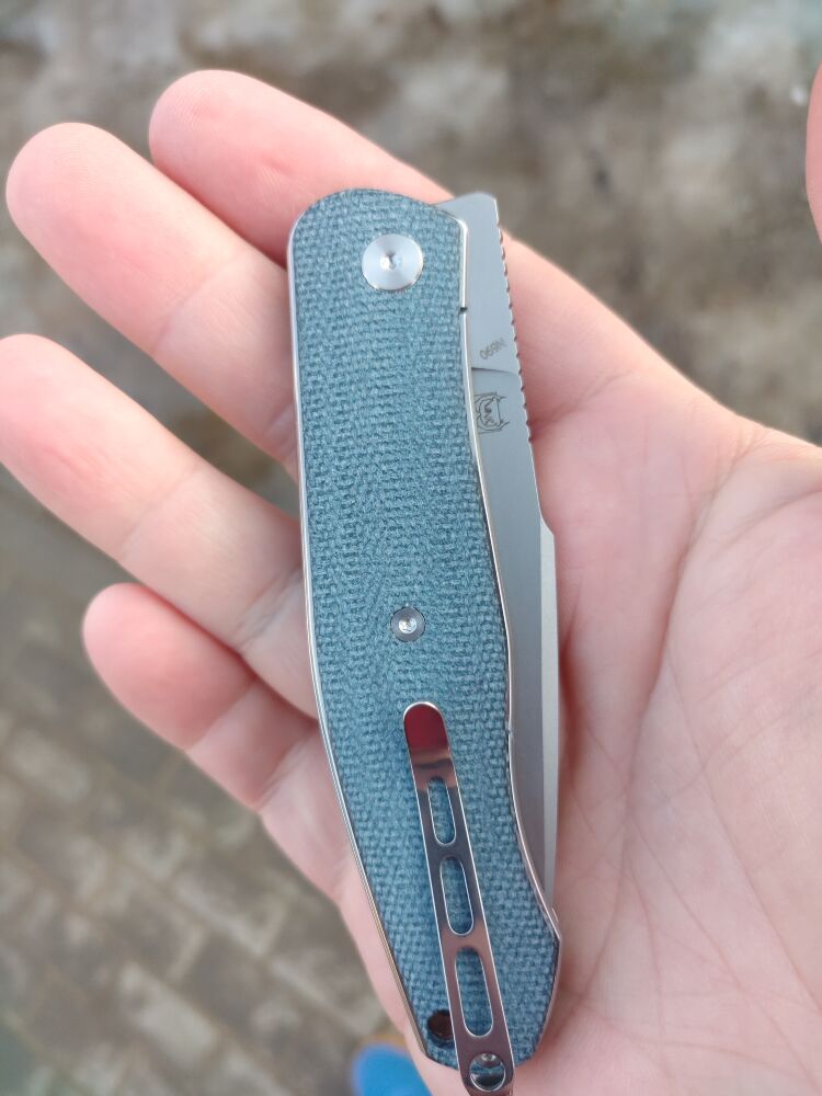 Рукоять ножа изготовлена из микарты, что придает конструкции прочность и легкость. Микарта — это композитный материал, состоящий из слоев ткани, пропитанных смолой и спрессованных под высоким давлением. Denim Micarta отличается высокой устойчивостью к воздействию влаги и химических веществ, а также приятной текстурой, которая обеспечивает надежный и комфортный хват. Эргономичная форма рукояти предотвращает скольжение даже в условиях повышенной влажности, улучшая контроль над ножом.