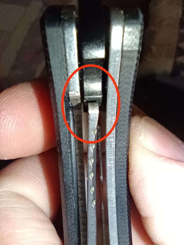 В описании сказано - "нож для силовых работ" Интересно для каких?🤣 Попробовал построгать и порубить ветку, без фанатизма, без батоннинга и сильных замахов. В итоге за 5 минут работы лайнер с начала пяты ушёл на середину, даже без разборки ножа видно как он стёрся об пяту, видимо слеплен совсем уж из пластилина. В начало пяты больше не встаёт, к если посильнее флипануть, то улетает в конец.