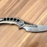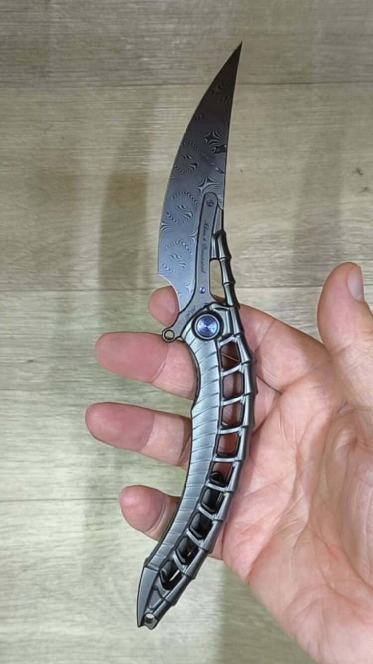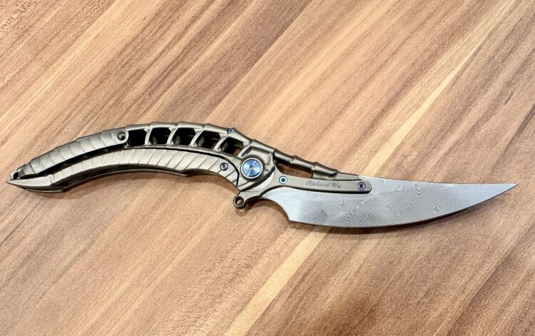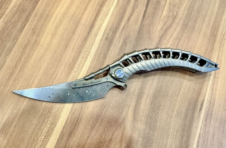 Rike Alien4 — оригинальный и эксцентричный нож. По названию ножа можно сразу понять, как он выглядит. Модель имеет биомеханический дизайн, Гигер был бы в восторге. Особенно это явно ощущается при взгляде на рукоять. Однако и клинок тоже нельзя назвать обычным. Он имеет выразительную, агрессивную форму и сделан из высококачественной дамасской стали. Шведская дамасская сталь Damasteel, устойчивая к коррозии и хорошо сохраняет остроту. Настоящая сталь премиум-класса. Этот исключительный складной нож был выпущен ограниченным тиражом. Нож для настоящего энтузиаста. Кстати, в комплекте с ножом идёт компактный мультиинструмент в форм-факторе ручки.