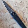 Клинок симметричной формы spear-point обеспечивает хорошие рез и прокалывание. Он выполнен из австрийской стали Böhler N690 — коррозионностойкого сплава с отличной твёрдостью и длительным удержанием режущей кромки. Это надёжная рабочая сталь, подходящая как для повседневного использования, так и для более серьёзных нагрузок. Покрытие black Ti-coat — это тёмное титановое напыление, которое придаёт клинку элегантный матовый вид, повышает износостойкость, защищает от коррозии и хорошо скрывает мелкие следы использования. Открытие происходит с помощью необычного торцевого флиппера с насечкой, который практически полностью скрыт как в закрытом, так и в открытом положении. Это делает силуэт ножа чистым и минималистичным. За фиксацию отвечает замок Ambi-lock — симметричный и надёжный механизм, позволяющий одинаково удобно пользоваться ножом как правой, так и левой рукой.