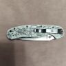 Рукоять выполнена из белоснежного стеклотекстолита G10. Этот материал не боится влаги, перепадов температур и ударных нагрузок. Белый цвет делает нож визуально легким и нарядным, а также позволяет легко найти его в траве или рюкзаке. Текстурированная поверхность накладок предотвращает скольжение в руке. Нож оснащен переставляемой клипсой для удобного ношения.