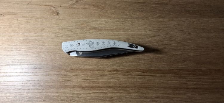Рукоять изготовлена из стеклотекстолита G10 — прочного и устойчивого к влаге материала. Этот композит не боится ударов, перепадов температуры и агрессивной среды, сохраняя удобный хват даже во влажных условиях. Форма рукояти слегка изогнута, что улучшает удержание, а карманная клипса позволяет удобно носить нож в кармане или на ремне.