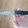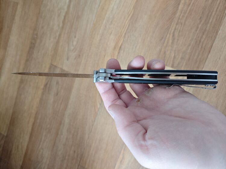 И есть еще конструктивный недостаток. Очень близкое расположение острия клинка к краю рукояти (утоплено между лайнерами меньше чем на миллиметр), я порезался при первой попытке достать из сумки. Знаю, что этот параметр не для всех критичен, но думаю, что знать об этой особенности, потенциальным владельцам будет полезно.