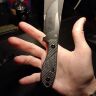 Рукоять изготовлена из микарты — композитного материала на основе пропитанной смолой натуральной ткани, который обладает отличным сцеплением и устойчив к внешним воздействиям. Эргономичная форма рукояти обеспечивает комфорт и надежный хват, позволяя эффективно управлять ножом в любых условиях.Предусмотрено темлячное отверстие для крепления страховочного шнура или аксессуаров. Для удобства и безопасного ношения нож поставляется с профессиональными ножнами Kydex с модульной системой крепления, позволяющей настроить угол и способ ношения под индивидуальные предпочтения