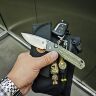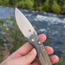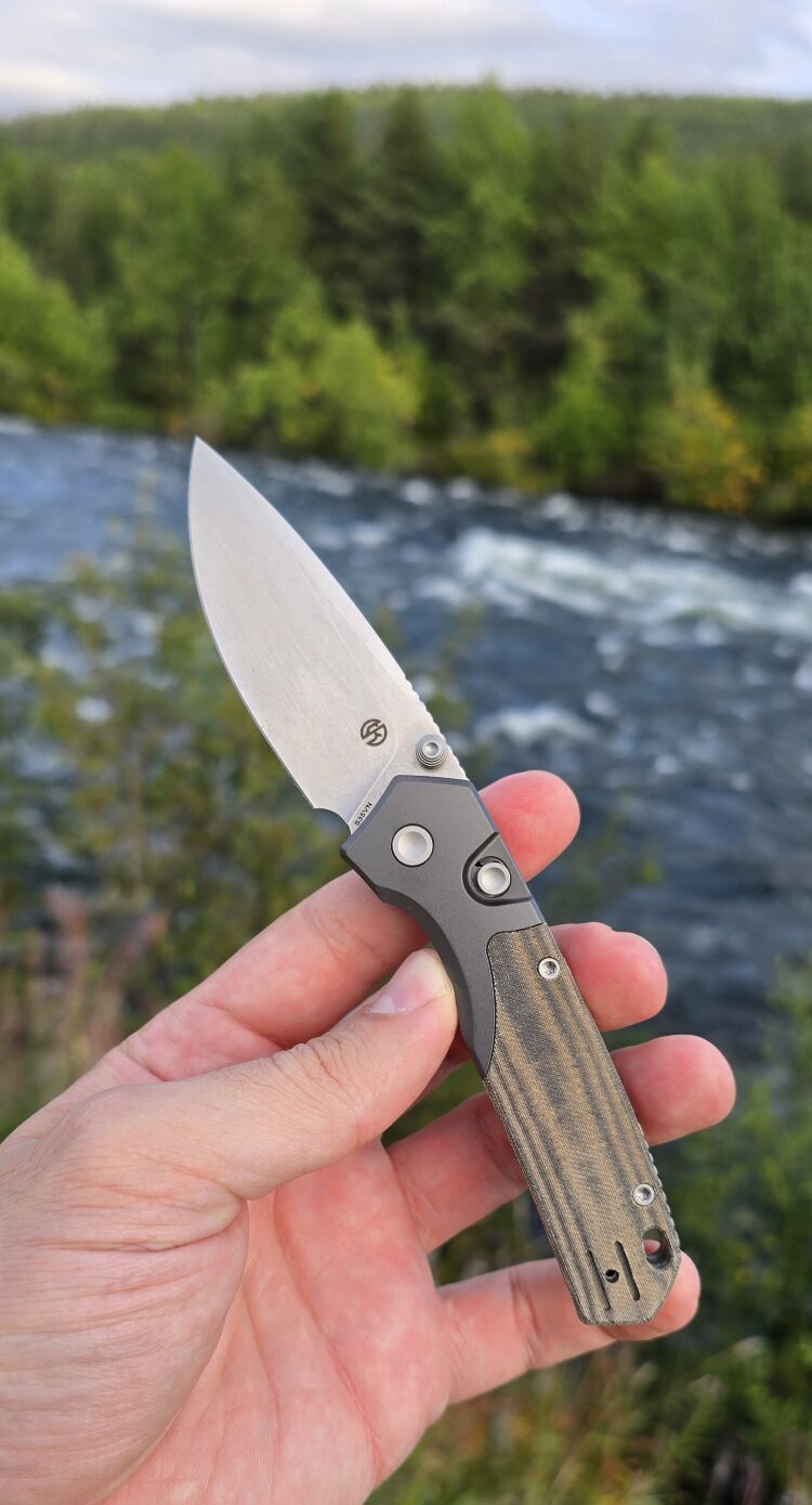 Клинок выполнен в практичной форме Drop-point, что обеспечивает отличную режущую способность, контроль реза и универсальность в работе. В его основе — премиальная порошковая сталь CPM S35VN, обладающая высокой износостойкостью, режущими свойствами и коррозионной стойкостью. Обработка клинка методом stonewash одновременно придаёт ему современный внешний вид и позволяет эффективно скрывать следы эксплуатации. Одной из ключевых особенностей является механизм открытия через шпенек, который обеспечивает быстрое, удобное и интуитивное извлечение клинка одной рукой. За надежную фиксацию отвечает современный Top liner-lock — безопасный и долговечный замок с плавной работой благодаря керамическим подшипникам в осевом узле.