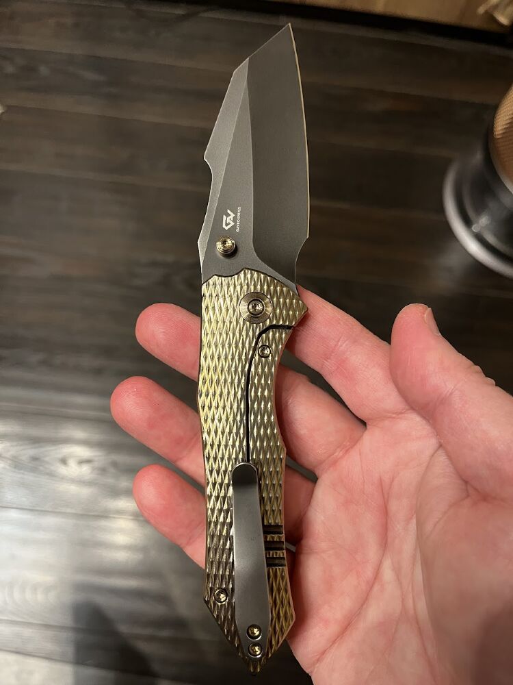И при всей этой красоте, в особенности - в сочетании с ценой, нож меня очень удивил тем что отказался открываться. Вероятно рукоять настолько узкая, что взяться за неё так, чтобы держать надёжно и не пережимать фрейм, никак не получается. Ну, как минимум - у меня. У всех, кто снимал на него обзоры, таких проблем не возникало. Двумя руками, когда ты не давишь не фрейм - без каких-либо проблем: легко и плавно. Спайди-флипом - тоже выщёлкивается нормально. За шпеньки же - это надо так исхитриться, что о "надёжном хвате" можно забыть.