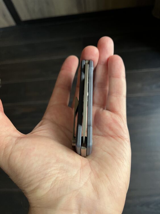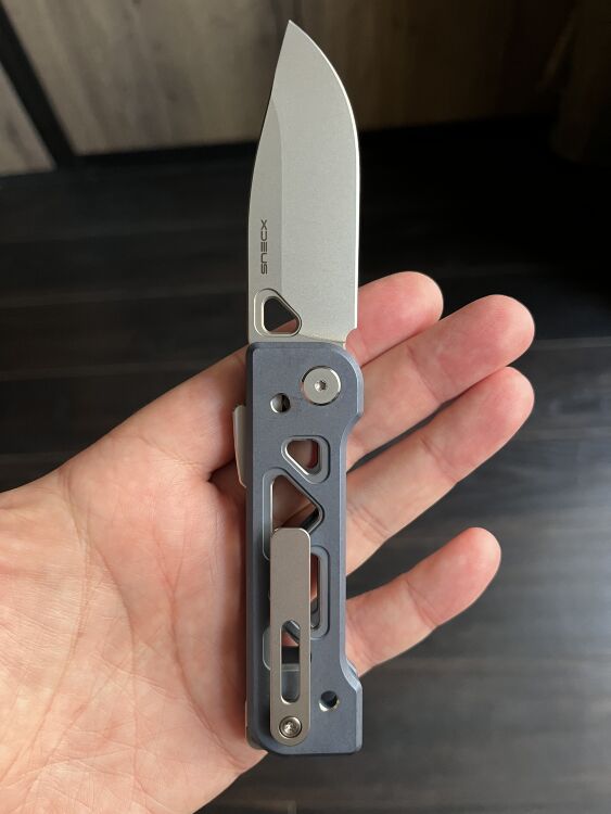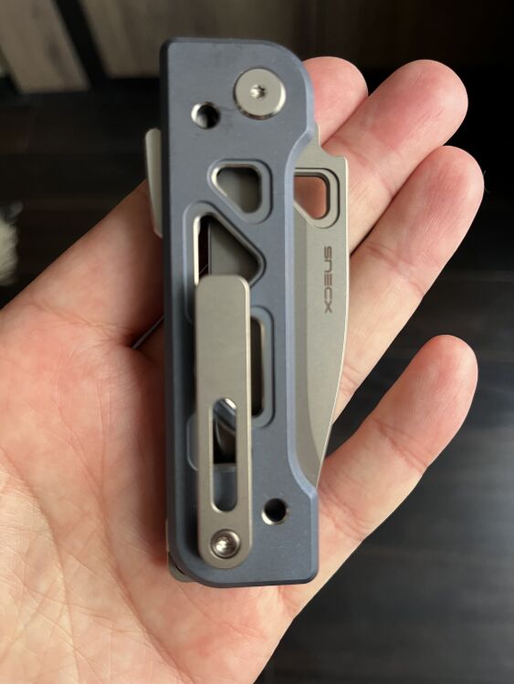 Рукоять выполнена из прочного, но легкого титана. Легкость титана и его высокая прочность делают нож удобным в повседневном использовании, а вырезы для снижения веса уменьшают нагрузку на карман. Благодаря эргономичной форме рукояти, нож удобно лежит в руке, обеспечивая надежный хват. В конструкции также предусмотрена реверсивная карманная клипса с возможностью установки в четырех положениях, что позволяет носить нож так, как вам удобно.